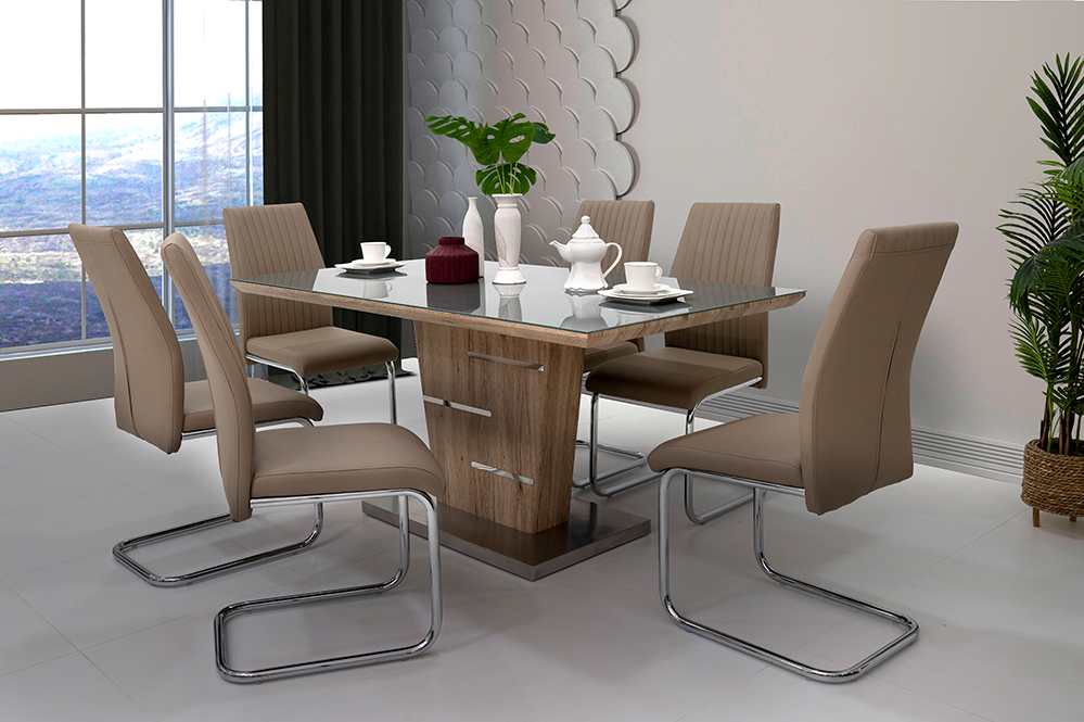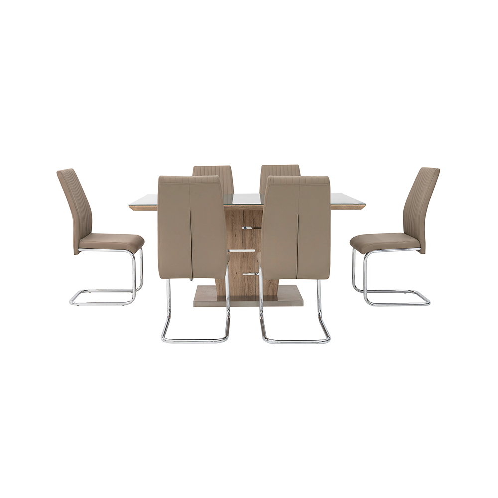Set Includes :1 Dining Table + 6 chairs(oak/brown)