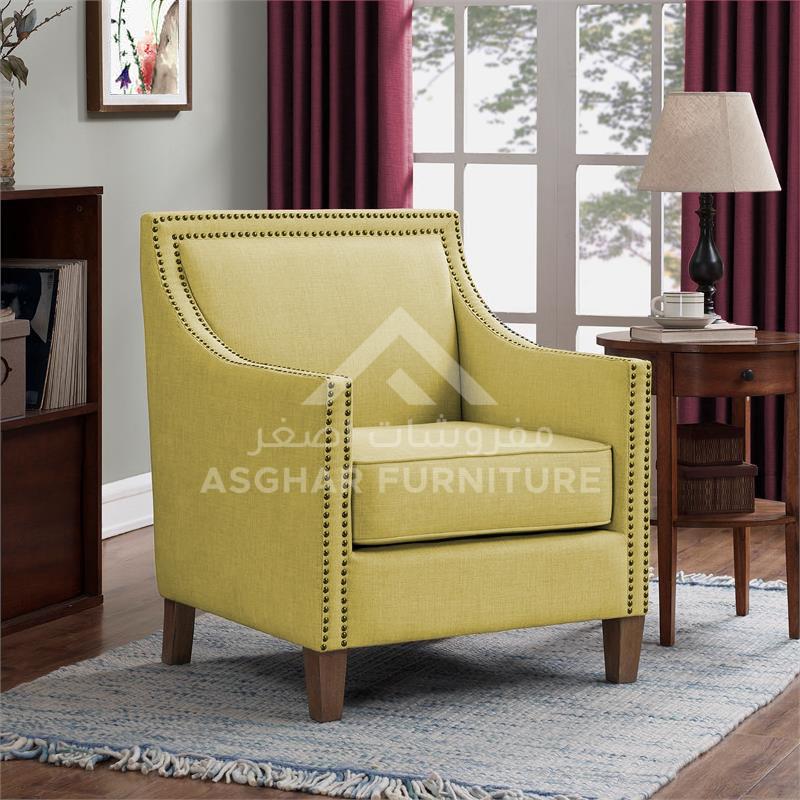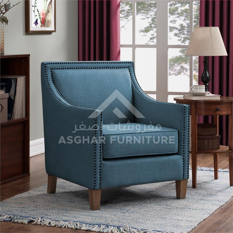Bring home the chic style of Marriot Luxury Accent Chair crafted by Asghar Furniture. This chair features sloping arms and a thick reversible seat cushion with sinuous no-sag springs. Highlighted by double rows of chrome nail head trim, Marriot Luxury Accent Chair will add comfort and beauty to any room. Specifications: